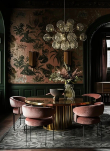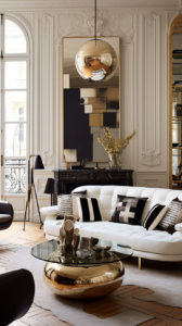 – Örnek: Duvar kağıtları ve freskler Art Deco tarzında sıklıkla kullanılmıştır. Ayrıca, yaldızlı çerçeveler ve geometrik desenli aynalar da iç mekanlarda öne çıkar.
